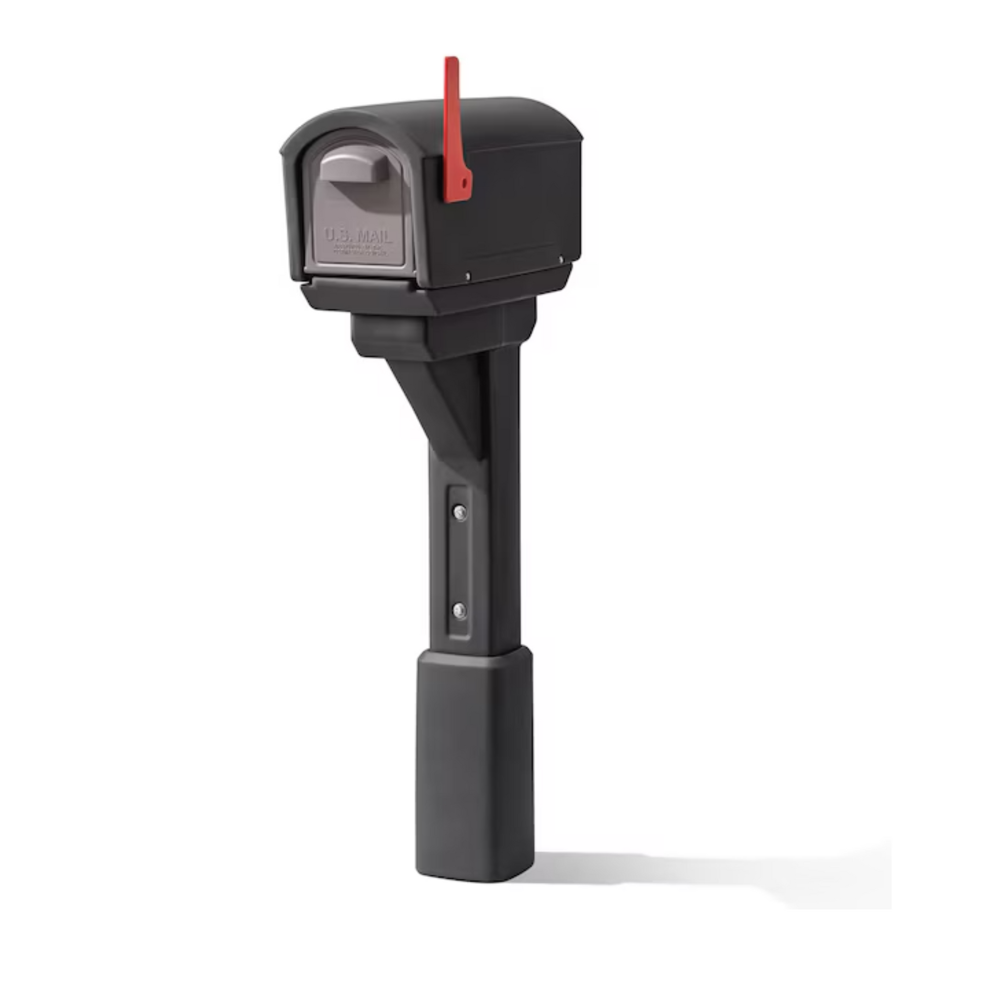 • Rust-Resistant Mailbox – Standard-size black mailbox made from galvanized steel to prevent corrosion.